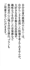01 自らの、人生の記録 私の葬儀プラン02 自ら、デザインする旅立ちの衣装。